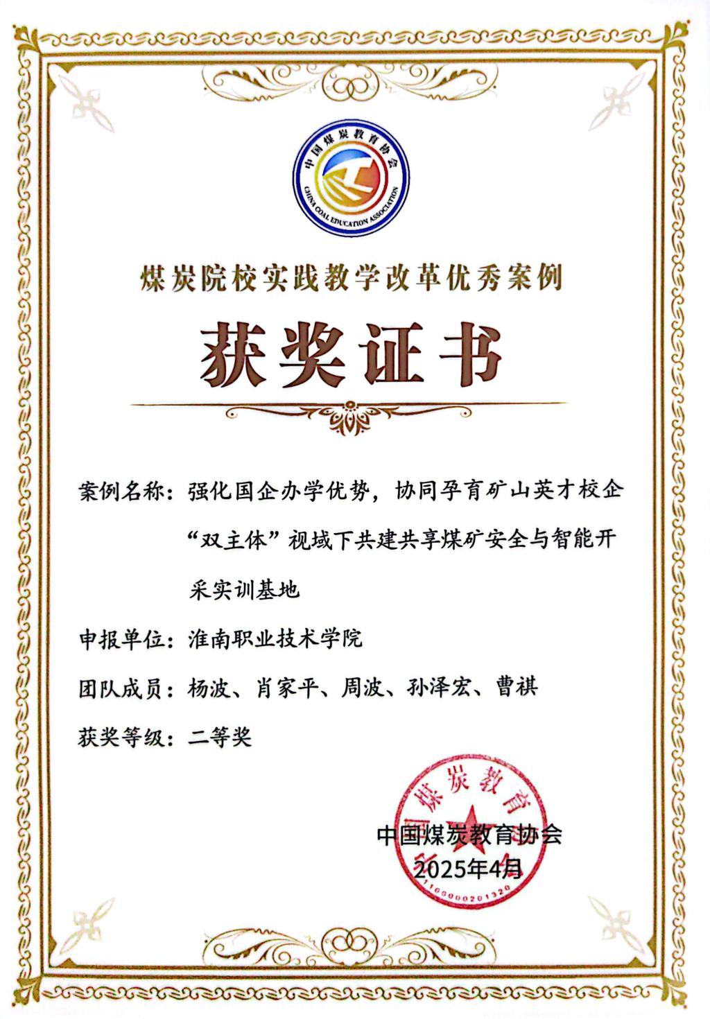 近期,根据中国煤炭教育协会《关于征集2025年煤炭行业院校“实践教学改革优秀案例”的通知》的有关要求,中国煤炭教育协会教学实践工作委员会组织开展了优秀案例的征集工作。通过学校推荐,我院杨波老师撰写的《强化国企办学优势,协同孕育矿山英才——校企‛双主体’视域下共建共享煤矿安全与智能开采实训基地》案例成果入选。案例主要阐述我院依托国企办学优势,校企双方经过不断地探索,总结出“双主体”实训基地运行体系;通过联合孵育教师流动站,提升师资教育科研能力、联合打造职业金课,提升专业内涵建设、联合树立竞赛标杆,强化技能培育优势,共建共享交流平台、挖掘产业文化底蕴,拓展社会培训功能等举措,校企“双主体”实训基地建设取得了丰富的经验和成果,为全国其他校企合作实训基地建设提供一定的参考价值。