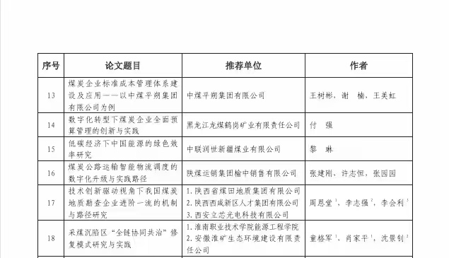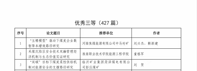 据悉,本次评选活动共收到来自全国各煤炭企事业单位推荐的成果1307篇,涵盖“双碳”目标下绿色转型、智能化升级、数字化转型等多个热点领域。经严格的形式审查、查重复核、专家评审及评审委员会多轮审议筛选,最终评选出优秀论文577篇,其中优秀一等仅38篇,获奖比例不足3%,竞争异常激烈。