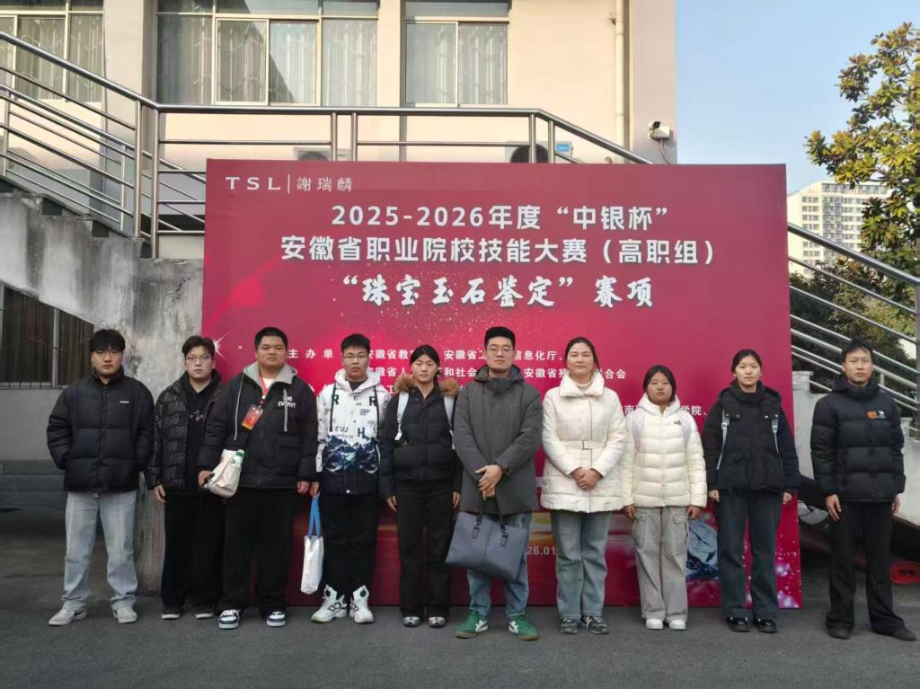 2025届安徽省职业院校技能大赛(高职组)“珠宝玉石鉴定”赛项于2025年1月23日至25日在安徽工业经济职业技术学院举办。来自全省7所院校的15支队伍、共76名师生齐聚一堂,展开同场竞技。我校能源工程学院选拔了8名专业扎实、实践能力突出的学生组成2支队伍,在2名指导老师的带领下参赛,最终荣获二等奖和三等奖。